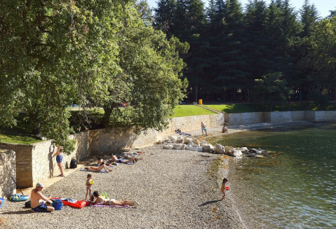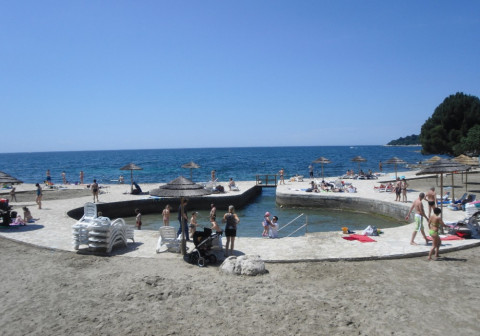 Бетонований, кам'янистий, трав'яний (100 м від готелю). Парасольки і лежаки на пляжі - платно; лежаки біля басейну - безкоштовно, пляжні рушники - безкоштовно (під депозит). На пляжі є душ, бари і ресторани.