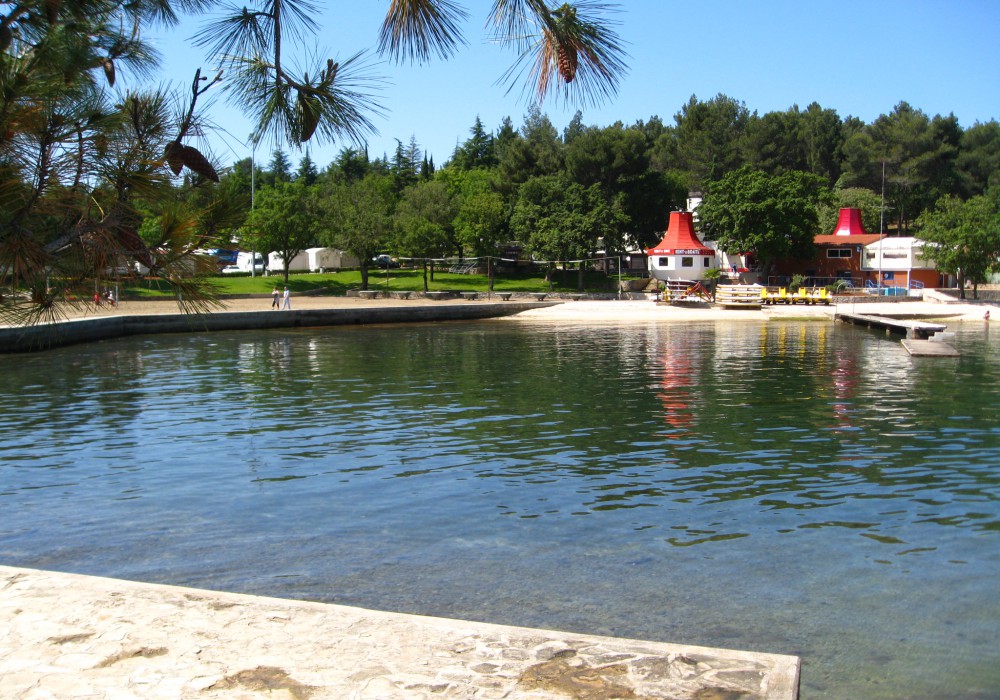 Пляжі центру відпочинку Zelena Laguna, відмічені «Блакитним прапором» (скелясті плато і бетоновані платформи), поруч з готелем. На пляжі душ, ресторани і бари; шезлонги і парасольки - за дод. плату; шезлонги біля басейну - безкоштовно.