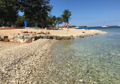 Скелястий / мощений / гальковий і трав'яний пляж в 50 м від готелю протяжністю 2500 м; вихід до моря: галька, скелі, сходинки з металевими поручнями, частково пристосований для людей з обмеженими можливостями; пляж призначений для: тільки для натуристів, шезлонги і парасольки (за додаткову плату)