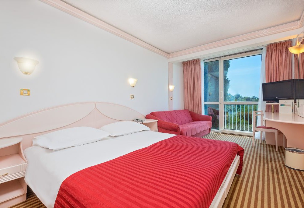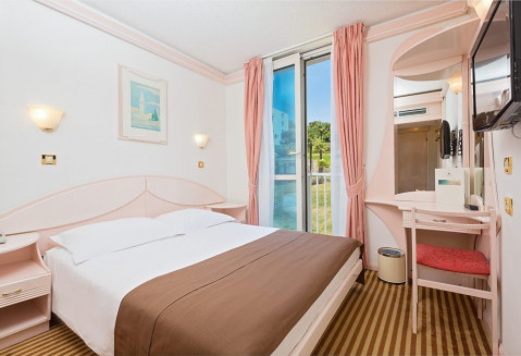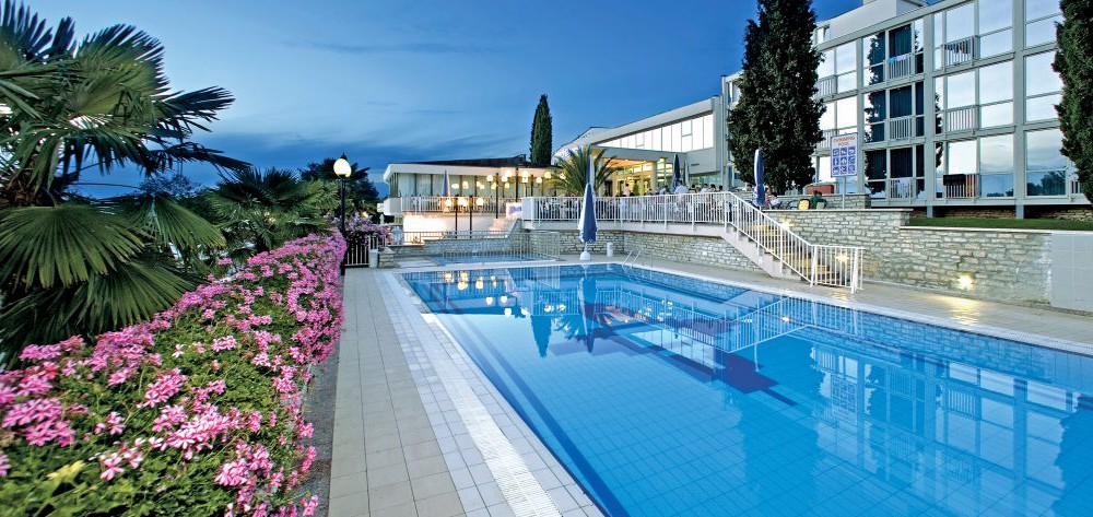 Готель відноситься до курорту Zelena Laguna і розташований поруч з готелем Plavi на самому березі моря. Працює за системою «все включено». До Пореча (5 км) регулярно ходять автобус (зупинка знаходиться поруч з готелем), туристичний автопоїзд і катери. Готель був повністю реконструйований в 1998 році, складається з трьох-, чотирьох- і п'яти-поверхових корпусів. 60 км від аеропорту. У 2017 року в готелі була проведена реновація інтер'єрів готелю.