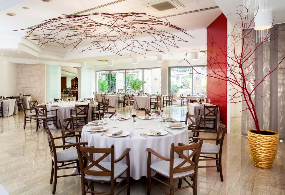 Ресторани і бари: пансіон ресторан з відкритою кухнею, ресторан a la carte Taverna Mediteran, лобі-бар, снек-бар на пляжі. Проводяться тематичні кулінарні вечори.