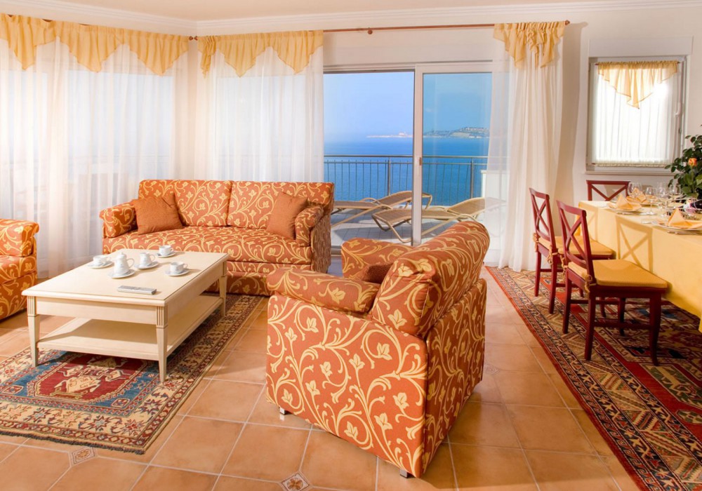 У номері: Всі апартаменти обладнані системою кондиціонування та опалення, телефоном із зовнішнім виходом, супутниковим телебаченням, апаратом внутрішнього зв'язку, оригінальними перськими килимами «Кезак» з 100% вовни, комплектом білизни і рушників, тапочки, халат. Ванна кімната з ванною / душем і туалетом, вітальня з сучасно обладнаною кухнею, диван-ліжко, обідній стіл, тераса / балкон. Зміна постільної білизни - щотижня, зміна рушників - два рази на тиждень.