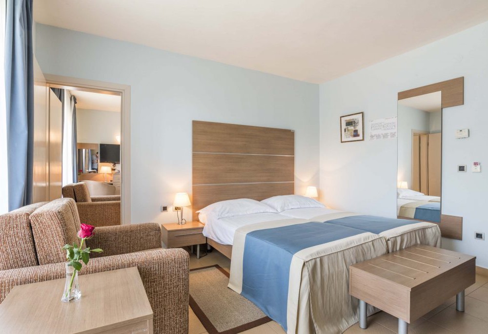 2 номери Presidential Suite (100 кв.м, просторий балкон з видом на море, 2 спальні (одна з ліжком king-size, інша з двоспальним / twin), лаунж, 2 ванні кімнати (одна з джакузі, друга з ванною), макс . 4 дор.)