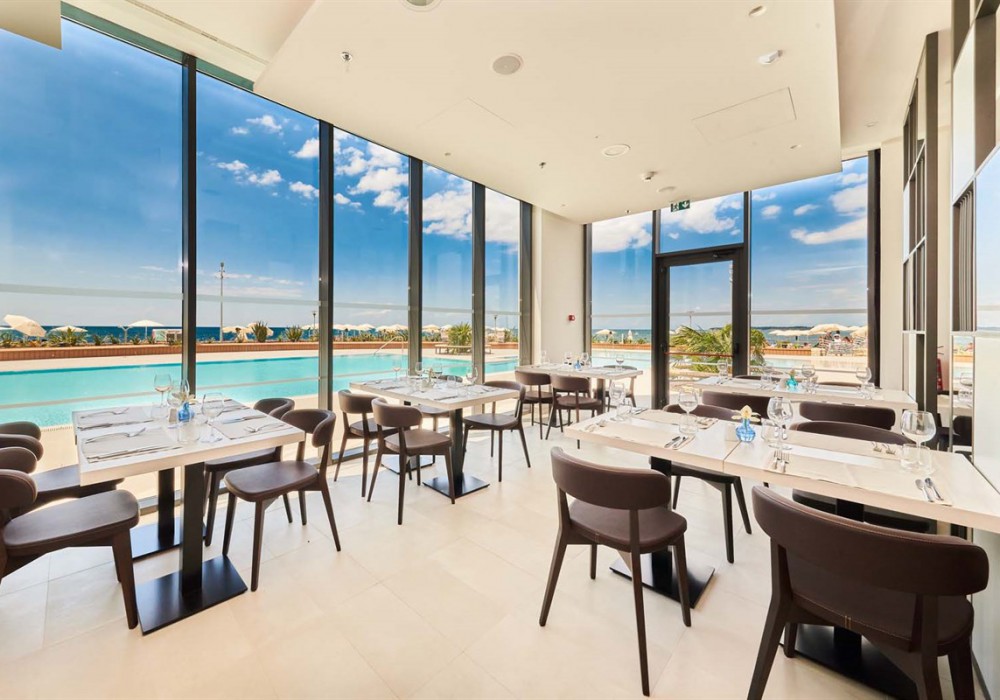 Ресторани і бари: основний ресторан з демонстраційної кухнею, ресторан a la carte з терасою на пляжі, бар біля басейну / лобі-бар (з червня по вересень), снек-бар на пляжі, проводяться тематичні кулінарні вечори, дегустації вина і оливкового масла, дегустація трюфельних продуктів і багато іншого ...