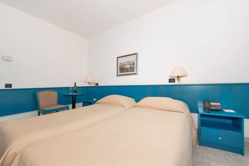 У номері: балкон, кондиціонер, телевізор (супутникове ТБ), телефон, сейф, ванна кімната з душем або ванною, туалет, фен, холодильник (в Suites). Пол - кахель. Всі номери для некурящих.