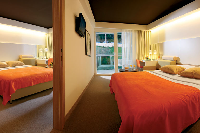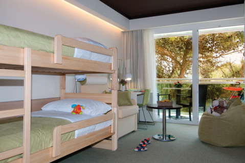 Family Room Park Side (два балкона, сторона парку, два об'єднаних двомісних номери для розміщення 2 дор. І 2-х дітей до 16 років, з можливістю 2 доп. Ліжок (60x200 см) для 2-х дітей до 12 років, дві ванні кімнати, макс. 2 дор. + 4 дит., 40 кв.м.)