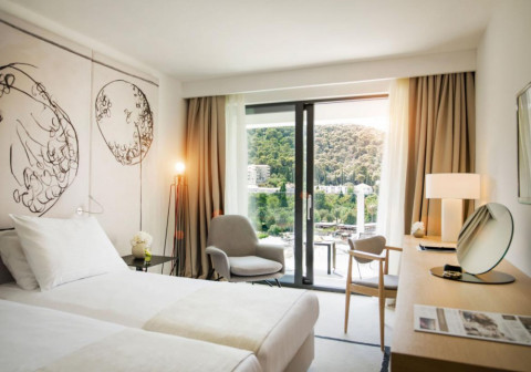 Повністю оновлений готель в 2015 р розташований в бухті Лапад на березі моря, від якого його відділяє лише пішохідна набережна, приблизно в 4 км від центру Старого міста, до якого за 10 хвилин можна дістатися автобусами № 5, 6 і 4. До аеропорту Дубровника 22 км.