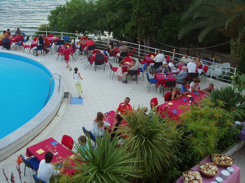Ресторани і бари: ресторан з видом на басейн і старе місто Корчули (сніданки, обіди та вечері, шведський стіл, традиційна далматинська кухня, вибір вин, 200 місць, кондиціонери, відкрита кухня, тематичні вечори раз в тиждень), аперитив-бар на терасі , кафе на терасі.