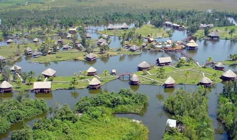 Через деякий час Ви опиняєтеся в величезному озері, на якому знаходиться острів, а на острові - макет індіанського села. Тут Ви зможете побачити хатини індіанців, їх скульптури виконані в натуральну величину, що розповідають історію тубільного минулого цих місць, прекрасні пейзажі, на тлі яких відразу ж хочеться зробити знімки, спробувати крокодилове м'ясо, а також послухати цікаву розповідь Вашого гіда про життя і звичаї перших мешканців цих земель. Існує повір'я, що жили тут індіанці утопили свої цінності в лагуні, щоб вони не дісталися конкістадорам.