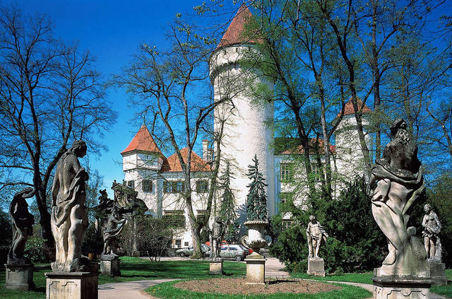 Замок Конопіште знаходиться в 50 км від Праги. Заснований в 13 ст. як фортеця, Конопіште сьогодні - це величезний замково-парковий комплекс з англійським парком, мармуровими скульптурами і розарієм.