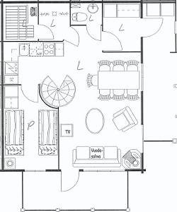 Кухонна плита / духовка, посудомийна машина, посуд, кухонне приладдя, холодильник і морозильна камера, мікрохвильова піч, електричний чайник, кавоварка, тостер, CD-плеєр, DVD, телевізор, сушильну шафу для одягу, праска і прасувальна дошка, фен, дрова, розетка для обігріву двигуна одного автомобіля, приміщення для зберігання лиж (закривається на ключ).