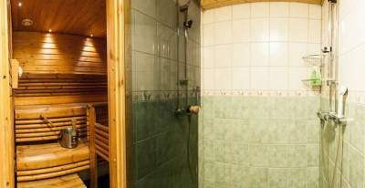 На нижньому поверсі 1 спальня з двома окремими ліжками. Вітальня, поєднана з кухнею, камін, електрична сауна, душова, окремий санвузол, передпокій. Ремонт сауни проведений влітку 2009 року.