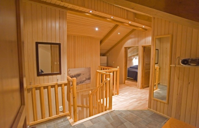 Опис: висококласні апартаменти. На першому поверсі 3 спальні (по 2 ліжка в кожній), вітальня, поєднана з кухнею, камін (дрова), туалет, балкон. На другому поверсі 3 спальні (по 2 ліжка в кожній), вітальня, сауна, ванна кімната, туалет.