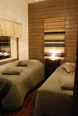 - Верхній поверх (24,5м2): комнтата з каміном, спальня, ванна кімната, туалет і сауна.