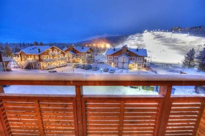 БАЛКОН: вид на захід (частково на передні cклони і на гору Kätkätunturi) або на схід (у внутрішній двір Levin Alppitalot), або на південь (на Передні схили).