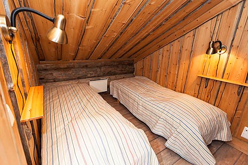 Спальні: 1 на нижньому поверсі, 3 (з них 2 без вікон) і спальний альков на верхньому.