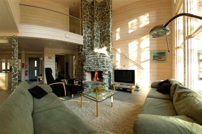 Оснащення: великий камін / дрова для каміна, 2 ТВ / кабельні канали (+ російськомовні канали), радіо / CD-плеєр, DVD, електрична плита + духовка, посудомийна машина, мікрохвильова піч, кавоварка, електричний чайник, тостер, холодильник, морозильна камера, пральна машина, автоматичний сушильну шафу для одягу, прасувальні пристосування, розетка для підігріву двигуна автомобіля.