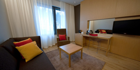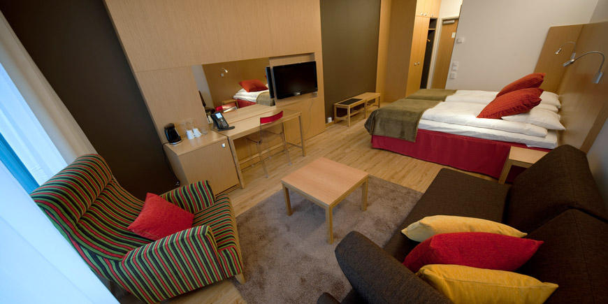 туалет / душ, ТВ, радіо, мінібар, сейф, телефон, інтернет, чайник / кавоварка, диван, що розкладається на 2 чол (160 см). У номерах суперіор також є балкон (крім номерів на 2-му поверсі). Сушильні шафи є у всіх номерах, крім стандартних двомісних.