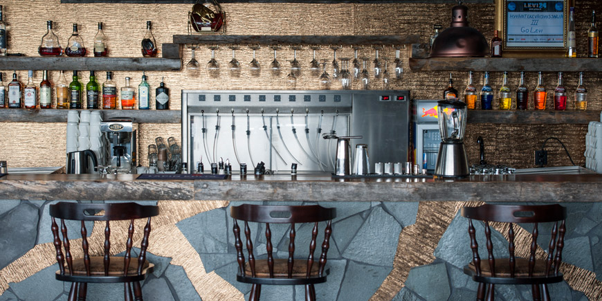 ресторан (шведський стіл і a la carte), лобі бар, ресторан і бар на 7-му поверсі з панорамним видом, ресторан Spiella в будівлі Levi Summit - дуже популярне місце відпочинку для тих, хто катається протягом дня.