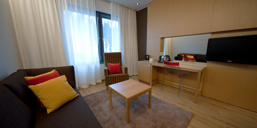 Новий сучасний готель розташований на центральному схилі гори Леві, єдиний в Леві готель ski-in / ski-out з катанням прямо від дверей. З центром курорту готель з'єднує безкоштовний фунікулер. Побудований в 2009 році.