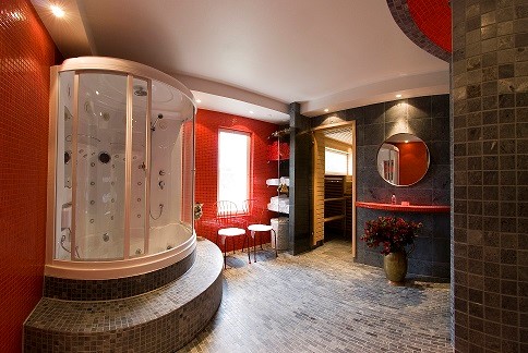 Спортзал і Сауна: сходи з холу веде на нижній поверх, де розташований спортзал і інфрачервона сауна. У приміщенні сауни великий диван, ТВ, камін, а також стіл на 8 осіб. Після сауни можна зануритися в джакузі, розташованої на терасі під відкритим небом або зануритися в ополонці замерзлої річки. На березі річки так само для користування гостей традиційна Фінська сауна на дровах.