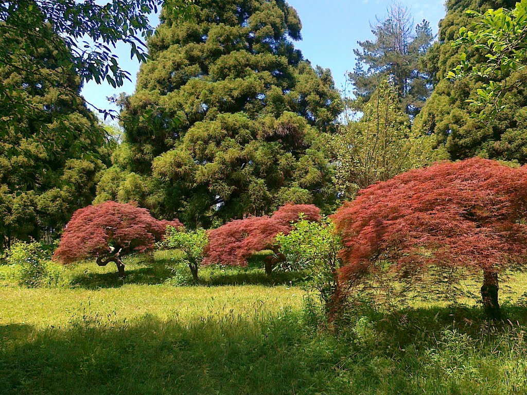 Одним з моїх улюблених місць в ботсаду став невеличкий ставок з лотосами і рибками. Якщо захочете трохи екстриму - прогуляйтеся по вузенькій стежці, що в'ється повз альтанку, розташованої неподалік, в сторону Колхидського заповідника (маршрут К). Варто однак врахувати, що доріжка прокладена на схилі і по ній рідко ходять.