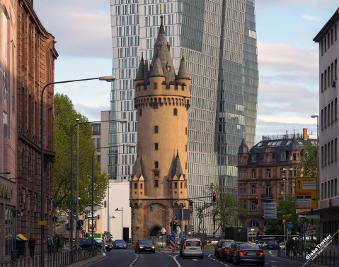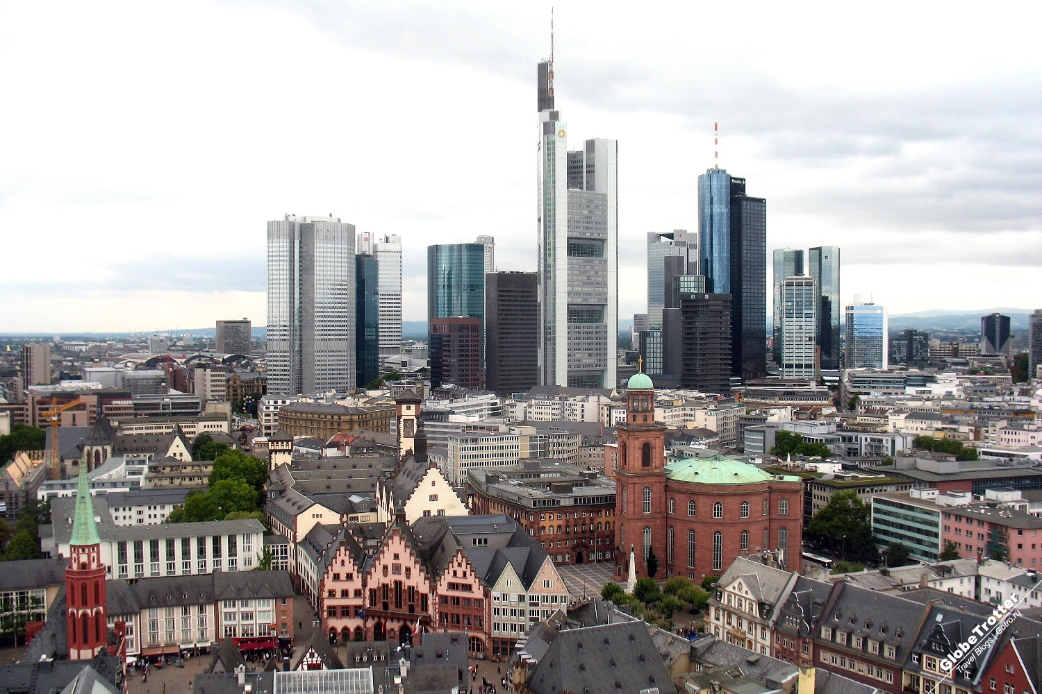 Центром міста є площа Ремерберг (Römerberg), відновлена після Другої Світової війни. У її центрі знаходиться фонтан, в якому, згідно з відданнями, колись било вино. Тут можна побачити старовинні будинки в стилі фахверк XIV - XV вв., Ратушу Römer і церква св.Павла Paulskirche (1833 р.). У 1848 р. тут засідав перший вільно-обраний німецький парламент. Ратуша складається з декількох будівель, побудованих в різний час. Першими були побудовані Zum Römer House і будинок для гостей Goldener Schwan (1405 р.). У кутовому будинку площі, який називається "Великий ангел", був заснований в XVII ст. перший франкфуртський банк.