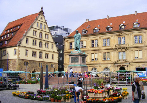 Одно з найулюбленіших місць гостей і жителів Штутгарту - площа Шиллера. Фрідріха Шиллера і сьогодні називають найбільшим громадянином міста. Пам'ятник поетові був відкритий в 1839 році. Його безкоштовно виготовив відомий скульптор з Дании Бертель Торвальдсен, який був дружний з Шиллером. Цей пам'ятник визнаний кращим з усіх зображень геніального поета. Історики вважають, що саме так виглядав автор "Вильгельма Телля" і "Розбійників".