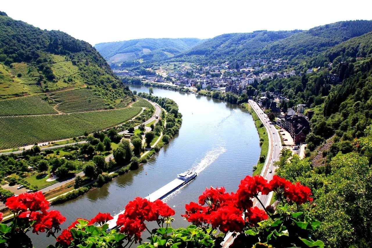 Нижня межа мальовничої долини за течією Рейну ‒ місто Кобленц і мис Дойчес-экк, де Мозель впадає в Рейн. Найефектніше панорама злиття двох річок виглядає з кабіни канатної дороги, прокладеної над Рейном з фортеці Эренбрайтштайн.