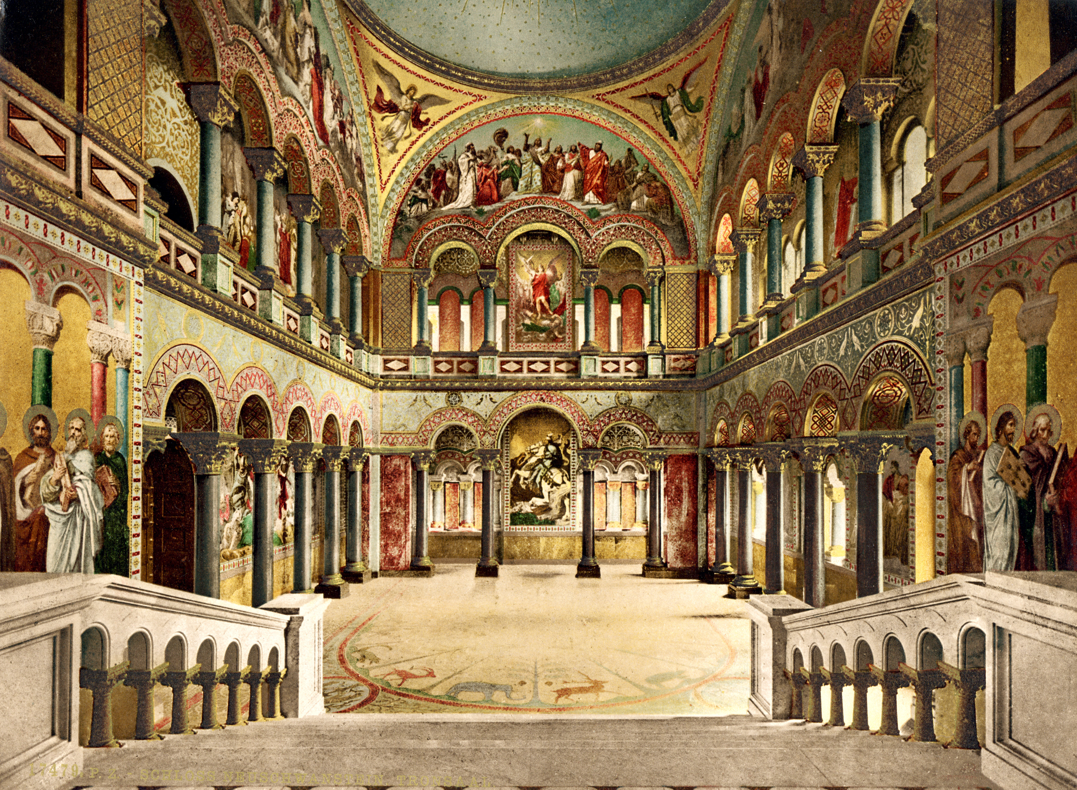 Король Людвіг був великим шанувальником творчості Рихарда Вагнера, можна навіть сказати про його дружбу з композитором. Замок Нойшванштайн був частково зведений і на честь Вагнера і його музичних творів. Нойшванштайн означає "Новий Лебединий замок" по аналогії з королем-лебедем одним з персонажів Вагнера. Інтер'єр багатьох приміщень замку просякнутий атмосферою Вагнеровских персонажів. Нойшванштайн дійсно справляє враження казкового середньовічного замку. Але усередині він був обладнаний відповідно до технологій тонни ого часу. Кімнати королівської резиденції були підключені до центрального опалювання. На кожному поверсі були крани з водою, а на кухні гаряча і холодна вода. Усі туалети замку обладнані системою зливу. Для виклику своїх слуг і ад'ютантів король користувався електросигналізацією і телефоном.