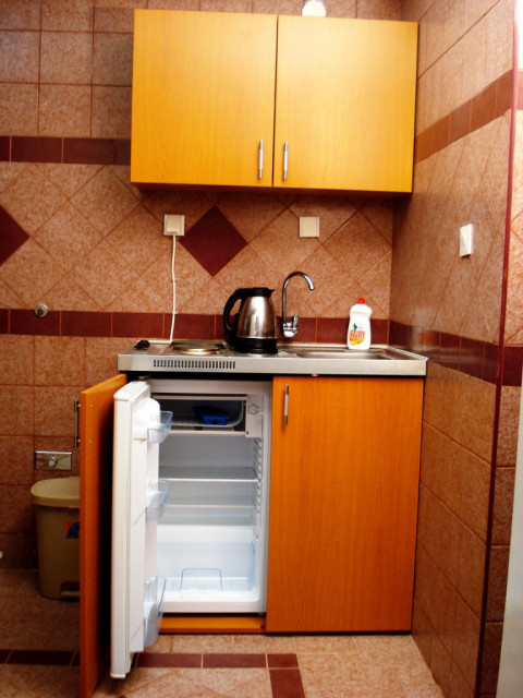 В STUD: французьке та односпальне ліжка, міні-кухня з необхідним посудом, кондиціонер, кабельне телебачення, інтернет, ванна кімната. Тераса - перед входом. Максимальна розміщення - 3 дор.