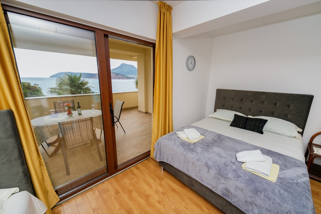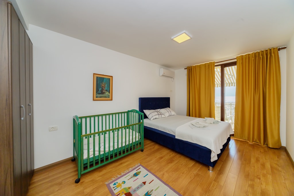 В АРР 06 sv/ 2 br: у вітальні розкладний диван, повністю обладнана кухня, дві спальні з французькими ліжками, супутникове ТБ, Wi Fi інтернет, два санвузли з душовою кабіною, великий балкон з видом на море. № 3. Максимальне розміщення: 6 чол.