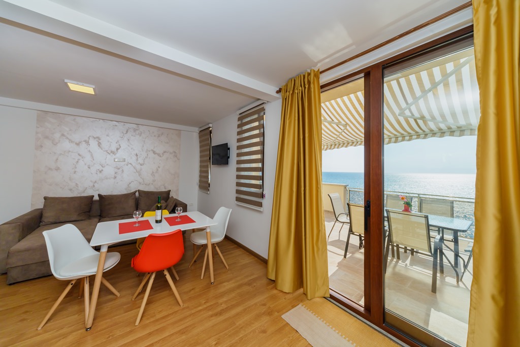 В АРР 04 sv: у вітальні розкладний диван, повністю обладнана кухня, в спальні французьке ліжко, супутникове ТБ, Wi Fi інтернет, санвузол з душовою кабіною, балкон з видом на море. № 6,10. Максимальне розміщення: 4 чол.