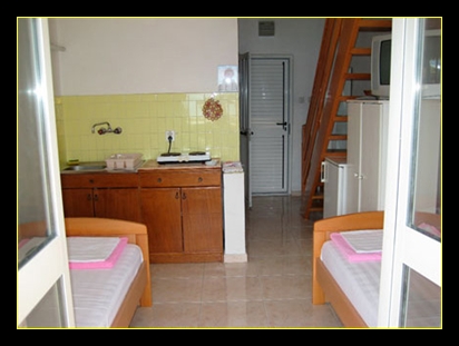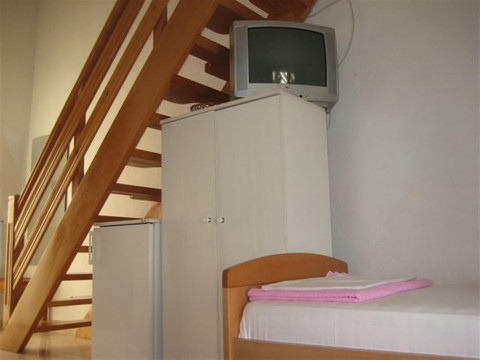 B APP: Кондиціонер, кабельне телебачення, холодильник, обладнана кухня, поєднана з кімнатою (роздільні ліжка), ванна кімната, простора тераса з тентом, вид на затоку. Апартаменти дворівневі, на другому поверсі - спальня - французьке та односпальне ліжка. Розміщення 4-5 чоловік.