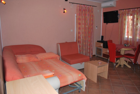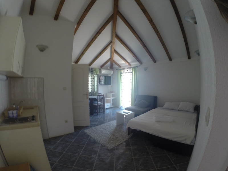 В студіо: Однокімнатний номер, кондиціонер, кабельне телебачення, кухня, французьке та окремі ліжка, ванна кімната з душовою кабіною, тераса.