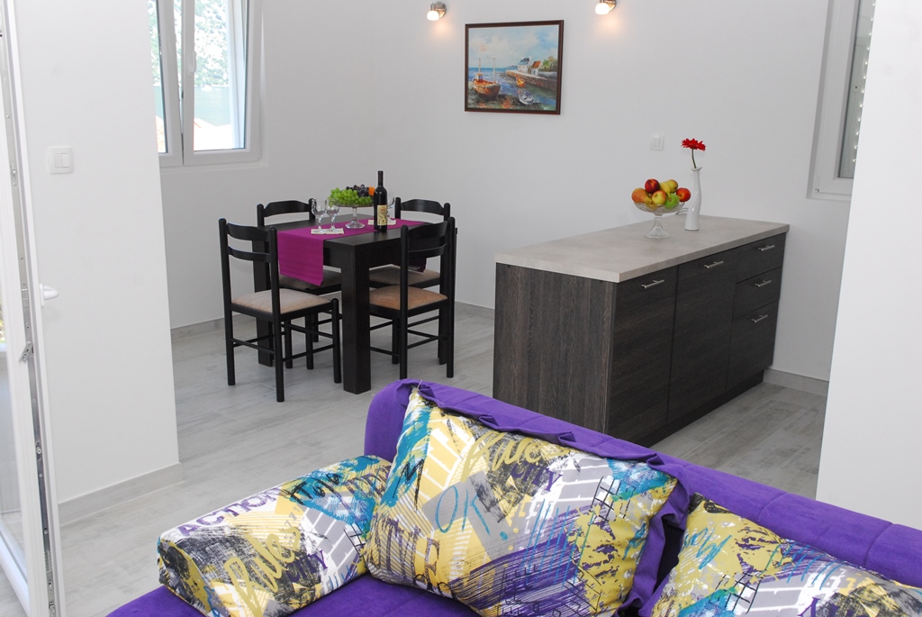 В APP 04 SV-1 BR: вітальня з диваном і повністю обладнаною кухнею, спальня з французької або роздільними ліжками, кондиціонер, супутникове ТБ, Wi Fi інтернет, санвузол з душовою кабіною, балкон з видом на море, відкривається захоплюючий вид на прекрасне село Пераст та знамениті острови Gospa od Skrpjela і Sveti Dordje. Максимальне розміщення: 2+2 людини. Площа: 50 м2.