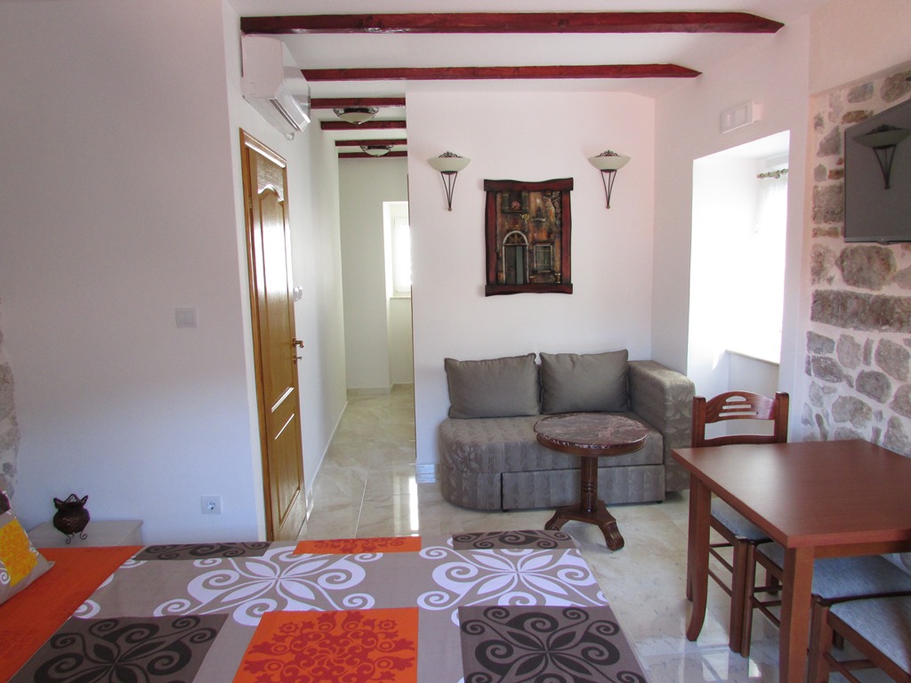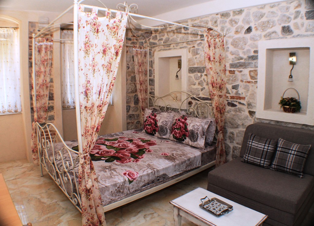 В STUD 02+1: однокімнатний номер з французьким ліжком та розкладною софою, повністю обладнана кухня, кондиціонер, супутникове ТБ, Wi Fi інтернет, санвузол з душовою кабіною, пральна машина. Окремий вхід в кожну студію. Без балкона. Площа: 30 м2. Максимальне розміщення: 3 людини.