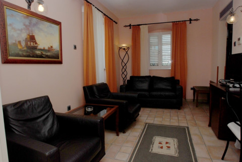 B APARTAMENT: Двокімнатний номер, в спальні французька рувати, у вітальні диван і два крісла, кондиціонер, сейф (безкоштовний), кабельне телебачення, телефон, доступ до інтернету, балкон, вид на затоку, душ/ванна, фен, косметика (32 м2). Максимальне розміщення - 4 особи.