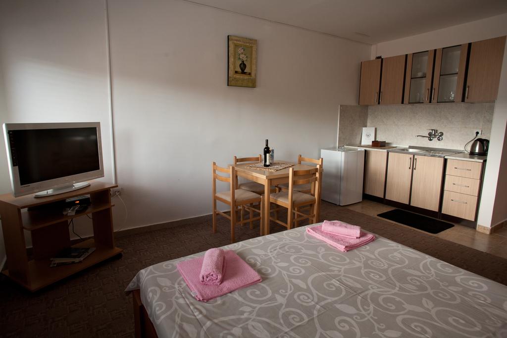 В STUD 02 SV: французьке ліжко або два окремих ліжка, кондиціонер, супутникове ТБ, міні кухня, чайник, холодильник, санвузол з душовою кабіною, балкон з видом на море. Площа: 28 м2. Максимальне розміщення 2 людини.