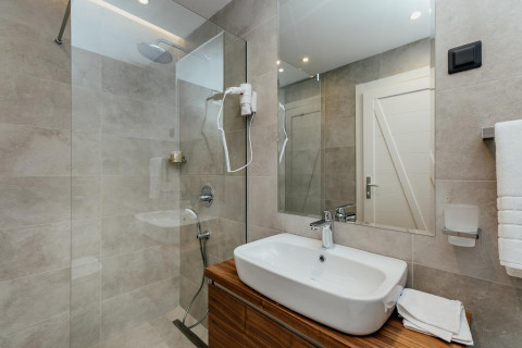 В STANDART: французьке або окремі ліжка, софа, кондиціонер, супутникове ТБ, Wi Fi інтернет, міні-бар, сейф, чайник, санвузол з душовою кабіною, фен, туалетні приналежності. Без балкона, вид на море. Максимальне розміщення: 3 чол.