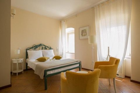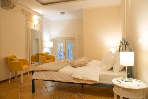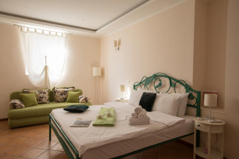 В Suite: французьке ліжко, кондиціонер, Wi Fi інтернет, немає телевізора, санвузол з душовою кабіною, вікна з видом на море. Максимальне розміщення: 2 чол. Площа: 35 м2.