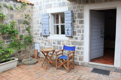 В АРР: Інтер'єр в старовинному стилі вдало доповнений різними предметами антикваріату. Апартамент складається з двох поверхів. На першому поверсі - простора вітальня з розкладним диваном, повністю укомплектована кухня, їдальня зона, ванна кімната з душовою кабіною. На другому - 2 окремі спальні з французьким та роздільними ліжками. Кондиціонер, кабельне телебачення, холодильник, електрообігрівач, чавунний камін, тераса перед входом. Максимальне розміщення - 6 осіб.