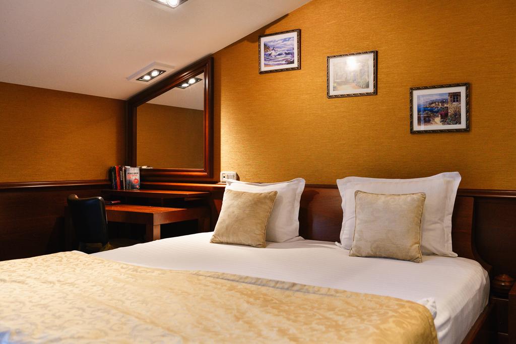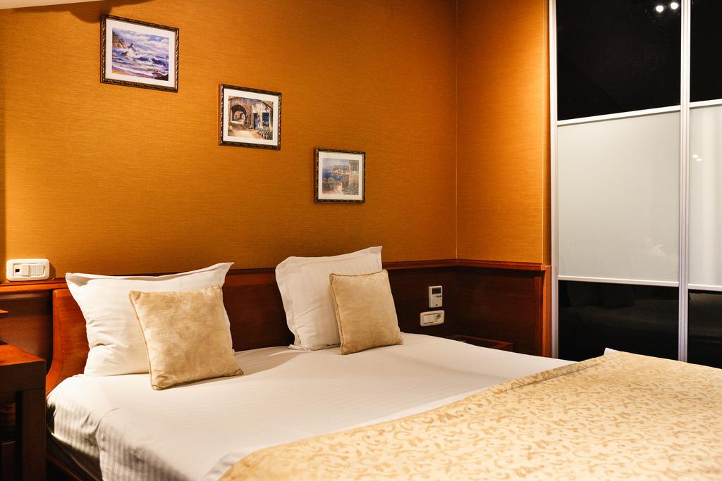 В DBL SUPERIOR, №3: невелика студія з кухонним куточком і зоною відпочинку, французьке ліжко або дві роздільні, кондиціонер, супутникове ТБ, Wi Fi інтернет, сейф, санвузол з душовою кабіною, балкон з видом на море. Площа номера 20 м2. Максимальне розміщення: 2 людини.