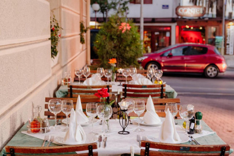 Бар, ресторан на 40 місць, відкрита тераса. Великий асортимент різних напоїв, коктейлів та вин, колекція ексклюзивних вин. Ресторан завоював дві золоті медалі за якість гастрономії і послуг. Дизайн готелю виконаний в англійському стилі.