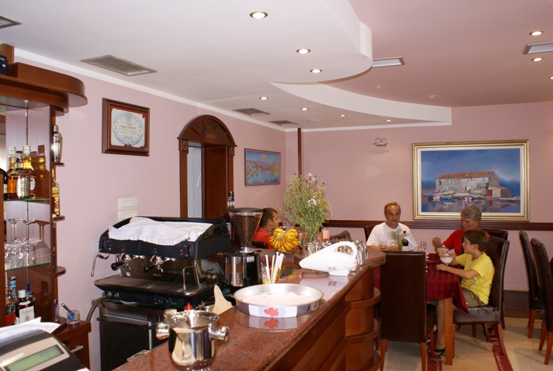 На першому поверсі знаходиться ресторан, в якому пропонуються страви середземноморської та національної кухні, для гостей готелю передбачені спеціальні знижки.