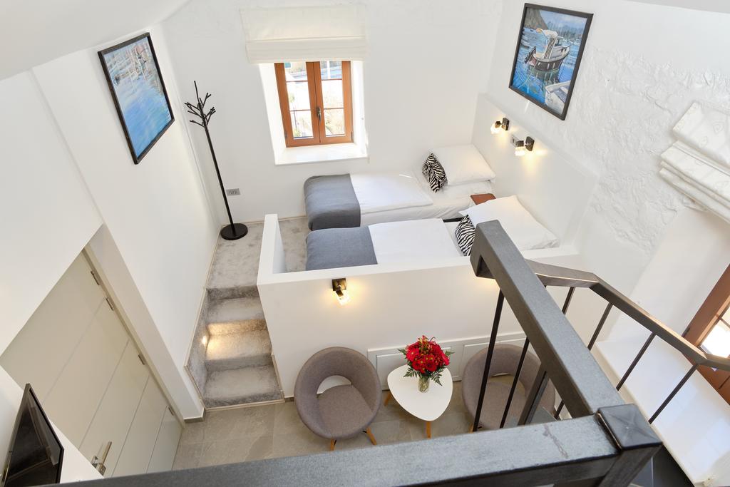 В DBL Loft: дворівневий номер, на одному рівні спальна зона з видом на сад і церкву, з французьким ліжком, яке можна трансформувати в два окремих, на іншому рівні зона відпочинку. Кондиціонер, супутникове ТБ, Wi Fi інтернет, міні бар, сейф, санвузол з душовою кабіною, фен. Максимальне розміщення: 2 чол. Площа: 19 м².
