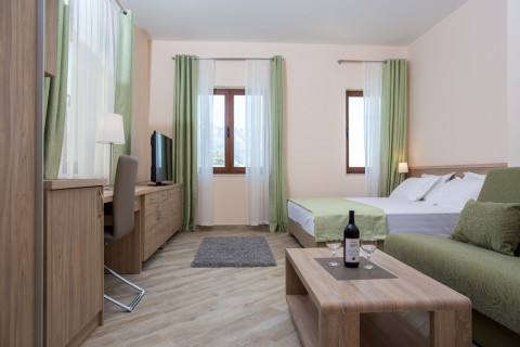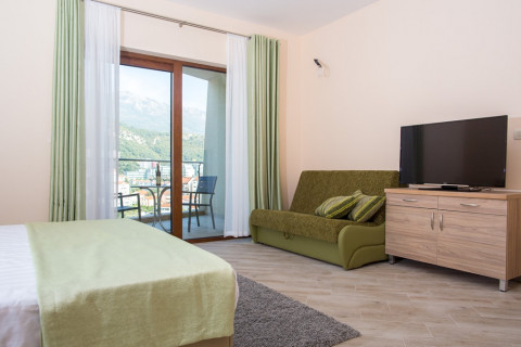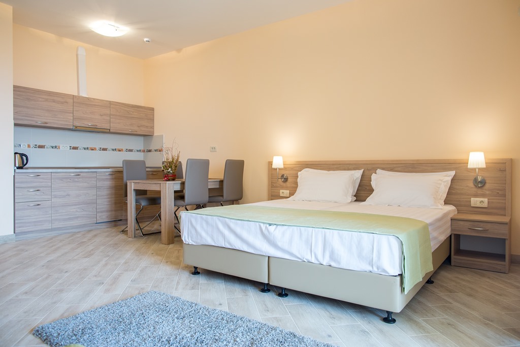 Номери студіо та апартаменти класу люкс. Комплекс складається з головного корпусу А і корпусу Вілла V.