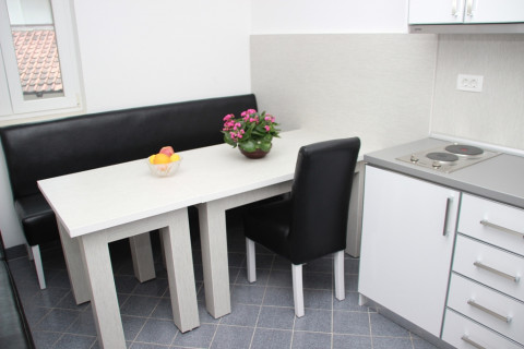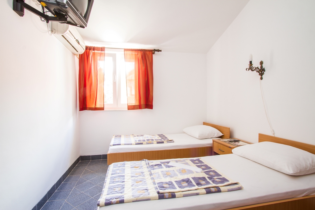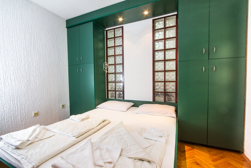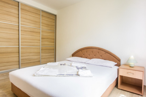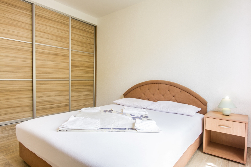 В АРР 06 - 2 bedrooms: вітальня з розкладним диваном, дві спальні з французьким ліжком, повністю обладнана кухня, холодильник, супутникове ТБ, Wi Fi інтернет, кондиціонер, санвузол з душовою кабіною, фен, тераса з видом на море. Максимальне розміщення - 6 осіб.