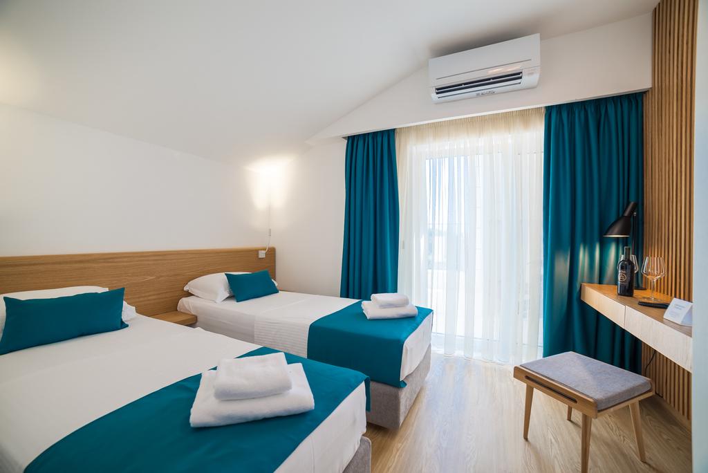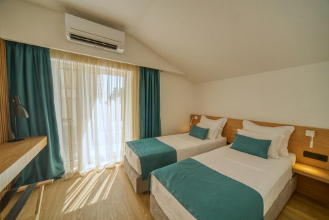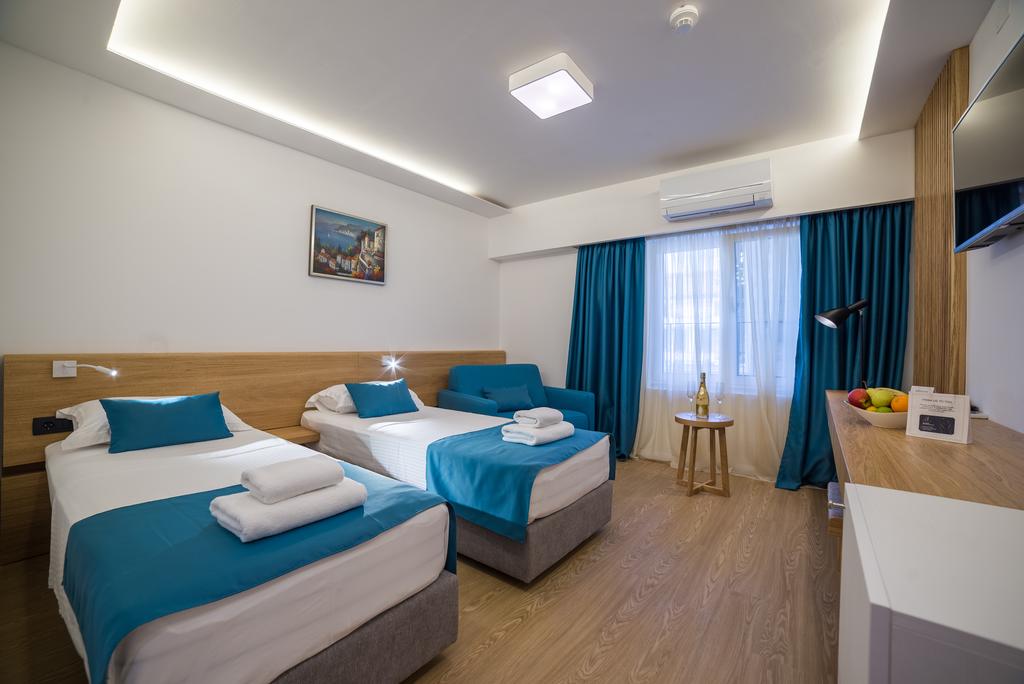 В DELUXE: французька або окремі ліжка, софа, кондиціонер, супутникове ТБ, Wi Fi інтернет, сейф, міні бар, чайник, санвузол з душовою кабіною, фен, балкон. Максимальне розміщення: 3 чол. Площа: 27 м2.