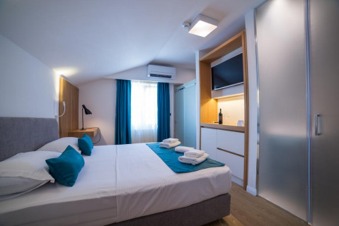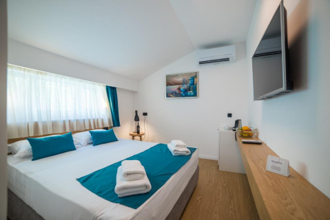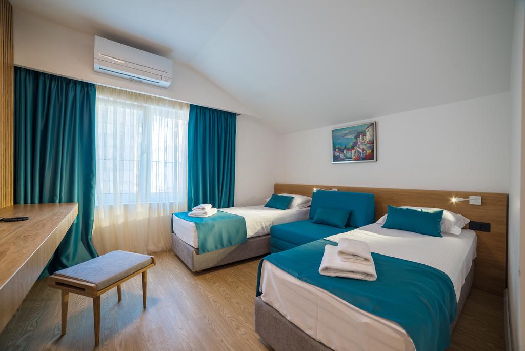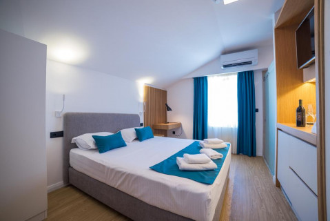У Будві, розташований поруч з комплексом «Словенска Плажа». В 30м від супермаркету, заправки, в 700м від центру міста, пошти і в 500м від автобусної станції.